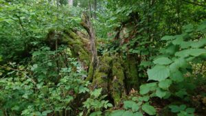 Käisin seal hiiesalus ühel augustikuu hommikupoolikul, kui sääsed enam ei kimbutanud ning sai rahulikult paika uurida ja tunnetada. See koht tekitas kohe rahuliku tunde ja soovi sinna tagasi minna. Mulle meeldivad rohkem sellised kõrvalisemad paigad. Pildil olev vaikselt oma igavikuteed kaduv puu asus õige pisut „peateest“ eemal. Olin juba minekul, kui mind kiskus midagi veel nagu tagasi, nagu midagi oleks nägemata jäänud ja nii oligi… See vana puu tekitas aukartust äratava tunde – mida kõike Ta oma elus on näinud ja kogenud. Alles nüüd hiljem taipasin, et sellel lihtsal ja loomulikul kuval on praeguses ajas sümboolne tähendus. Ju ma siis tajusin ja märkasin midagi olulist.